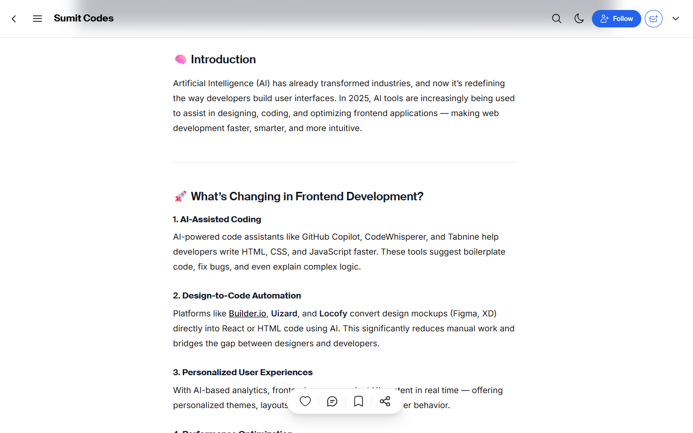 This is a modern tech blog where cutting-edge development meets clarity. Written by Sumit, a passionate software developer, this blog explores the latest trends in frontend frameworks, AI in web development, coding best practices, and real-world dev tools. Whether you're a beginner or an experienced coder, SumitCodes offers practical insights, tutorials, and thought pieces tailored for modern developers.